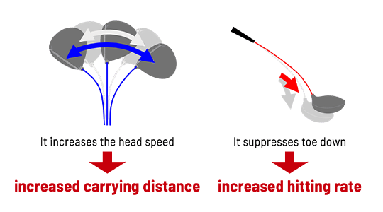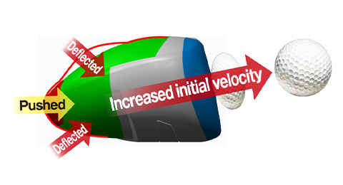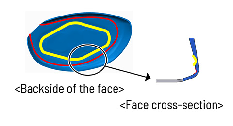 Two grooves on the back of the face create more flex, maintaining high repulsion power even on off-center hits.